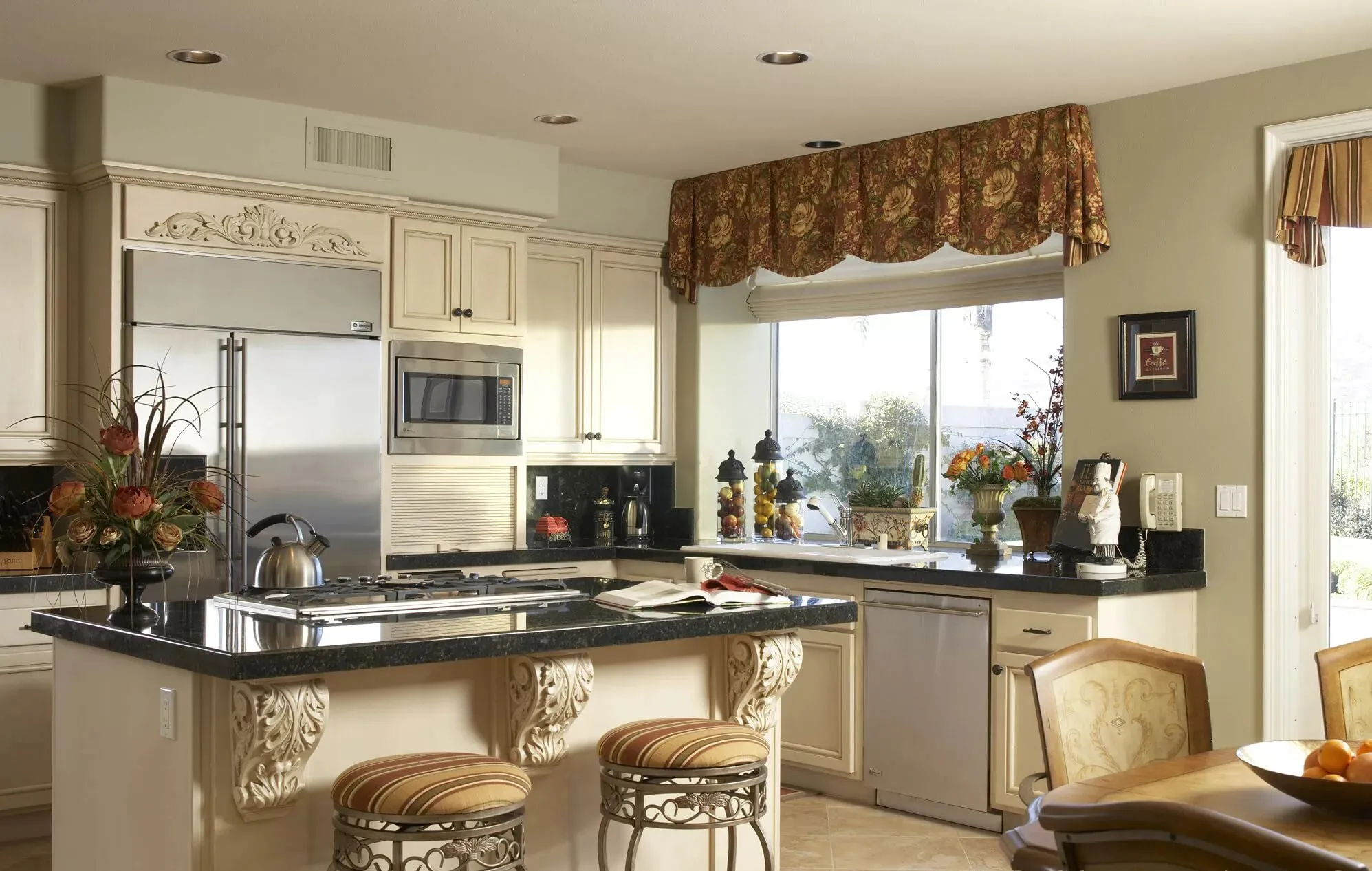 Для стиля прованс характерно широкое использование ламбрекенов, в том числе на кухне.