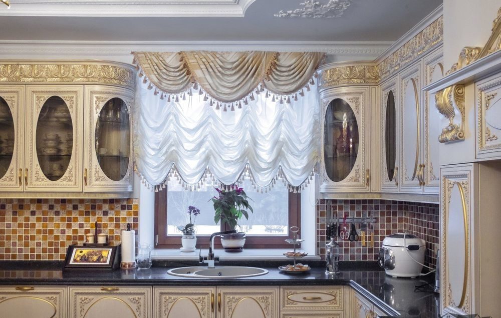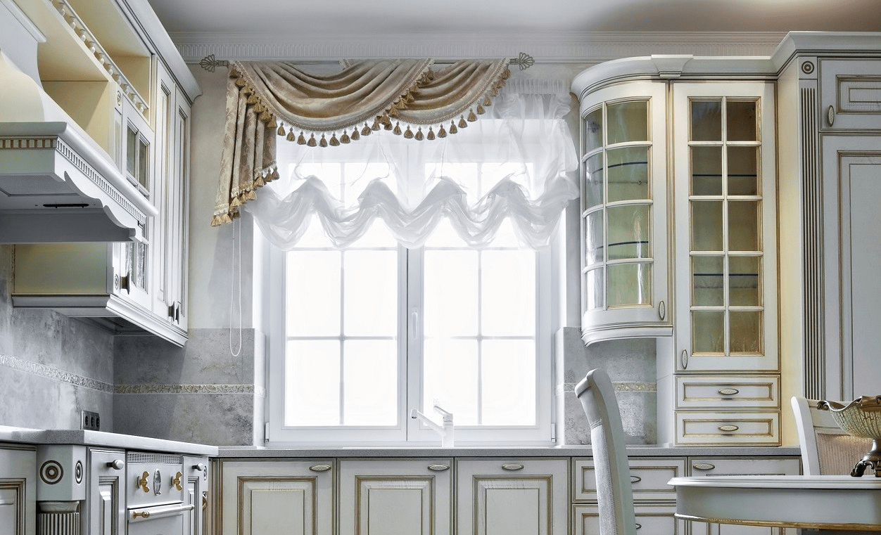 Основные виды штор в кухне: фото красиво оформленных окон
