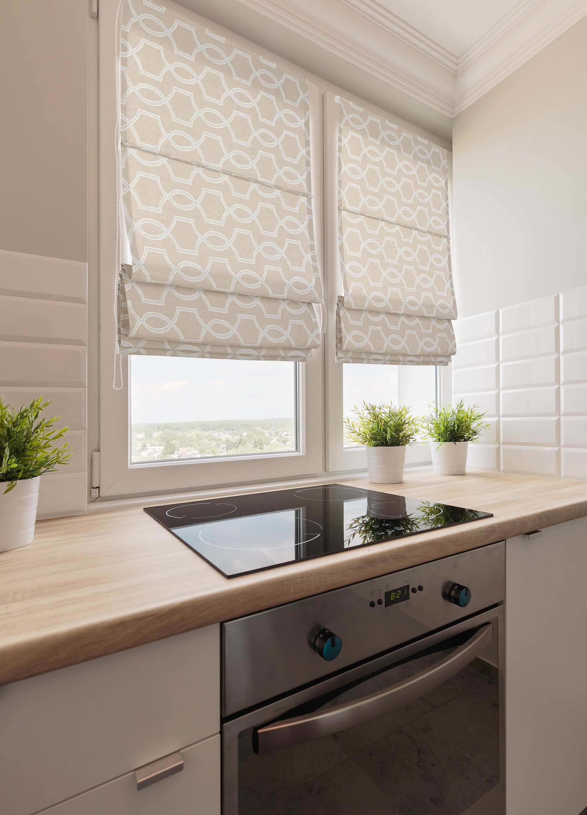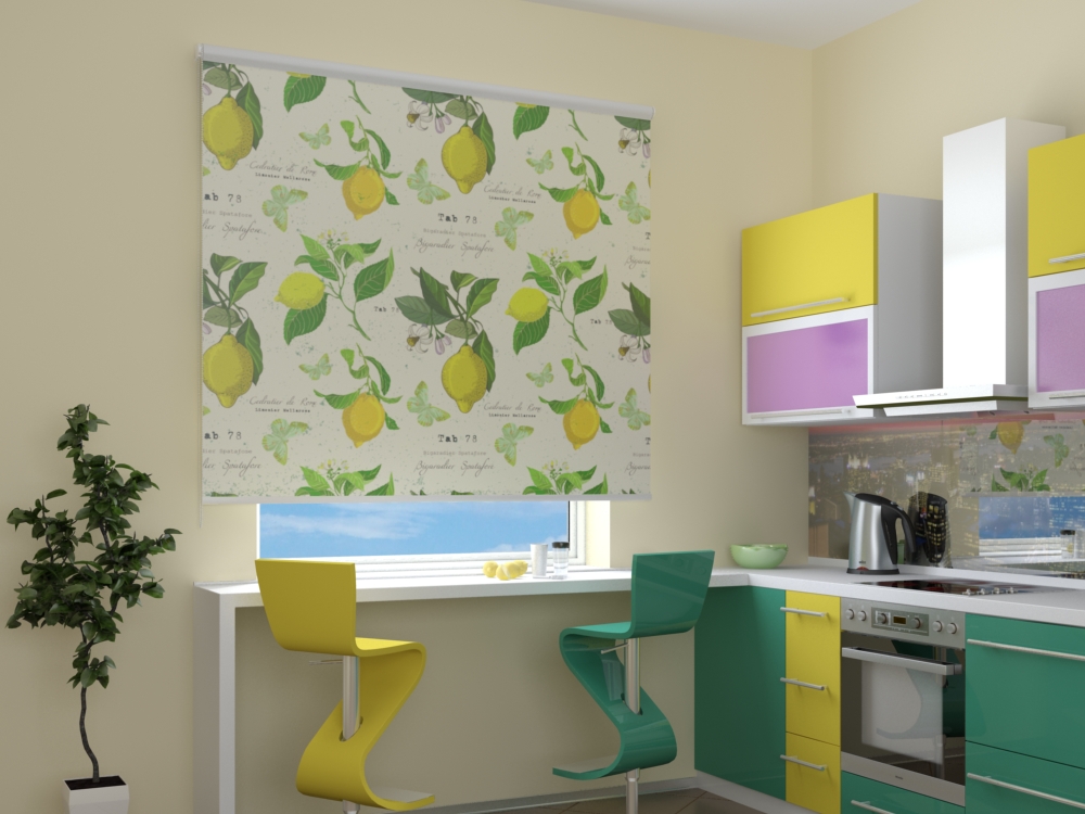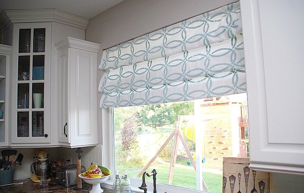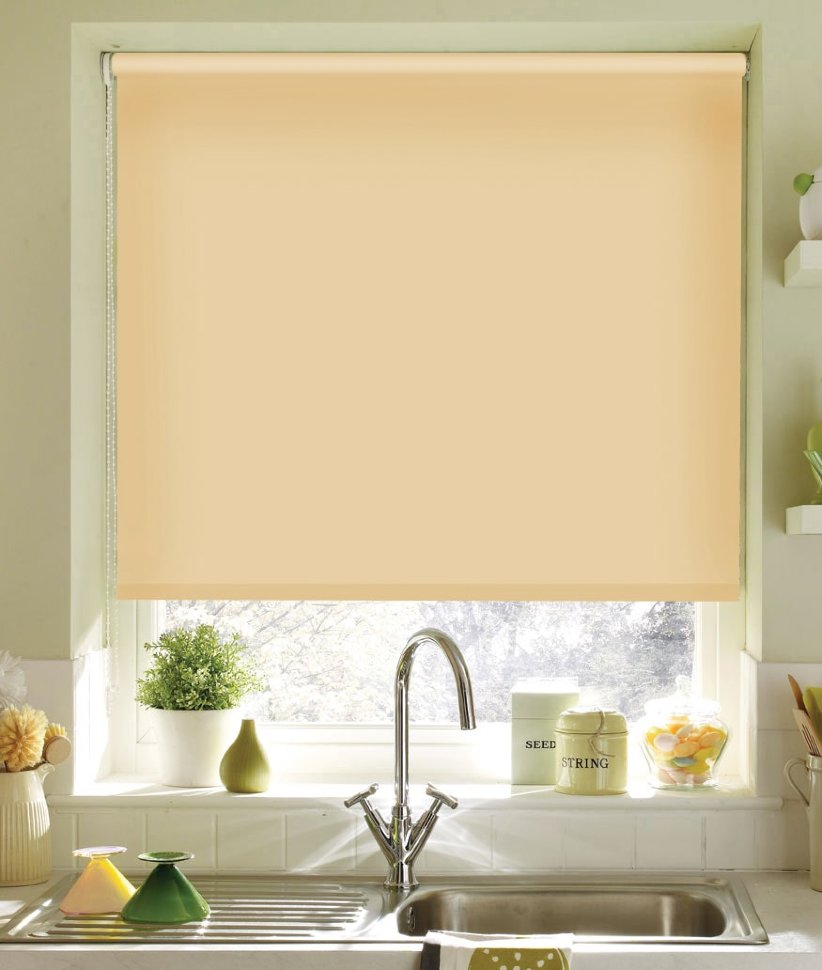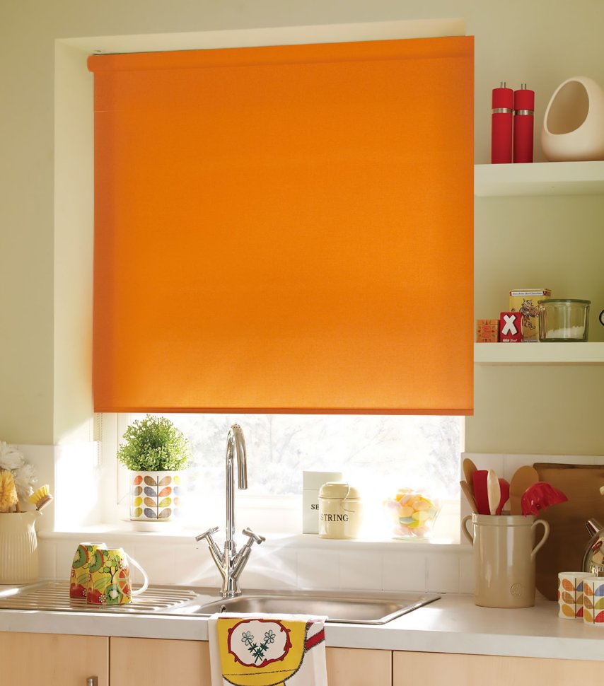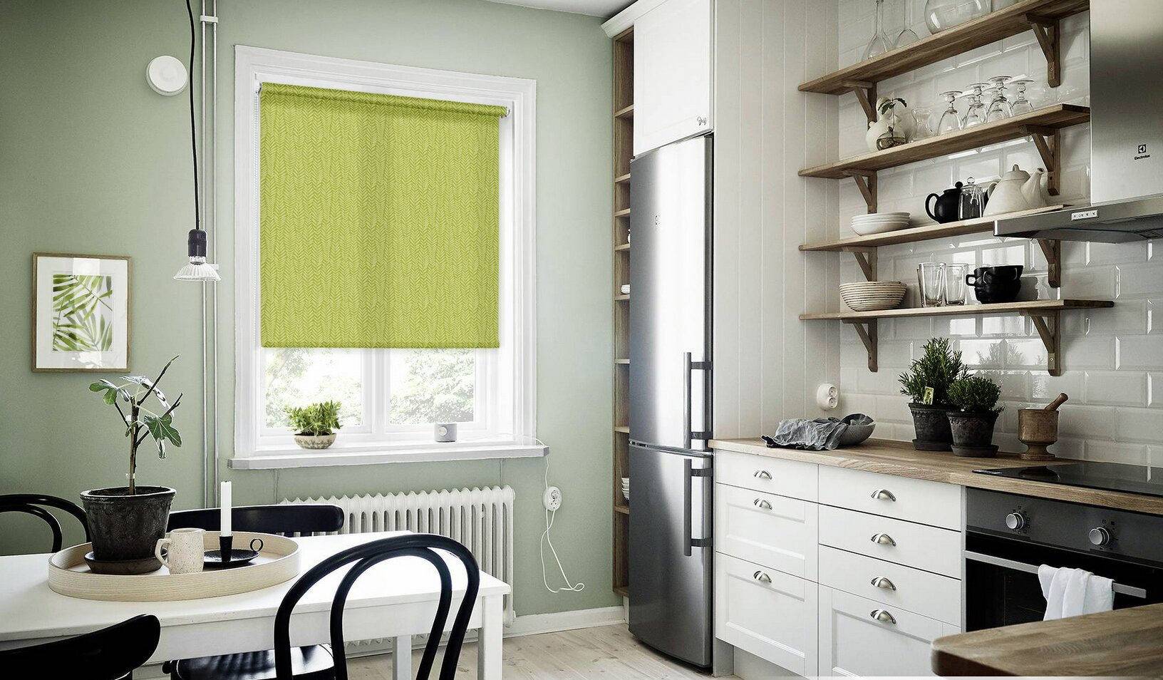 Простые римские шторы в маленькой кухне