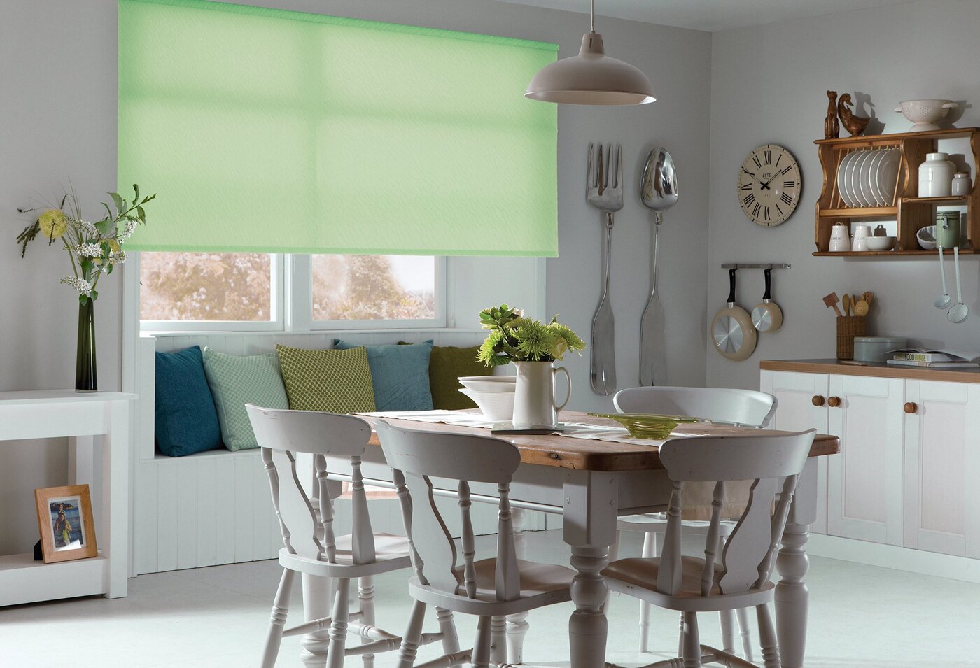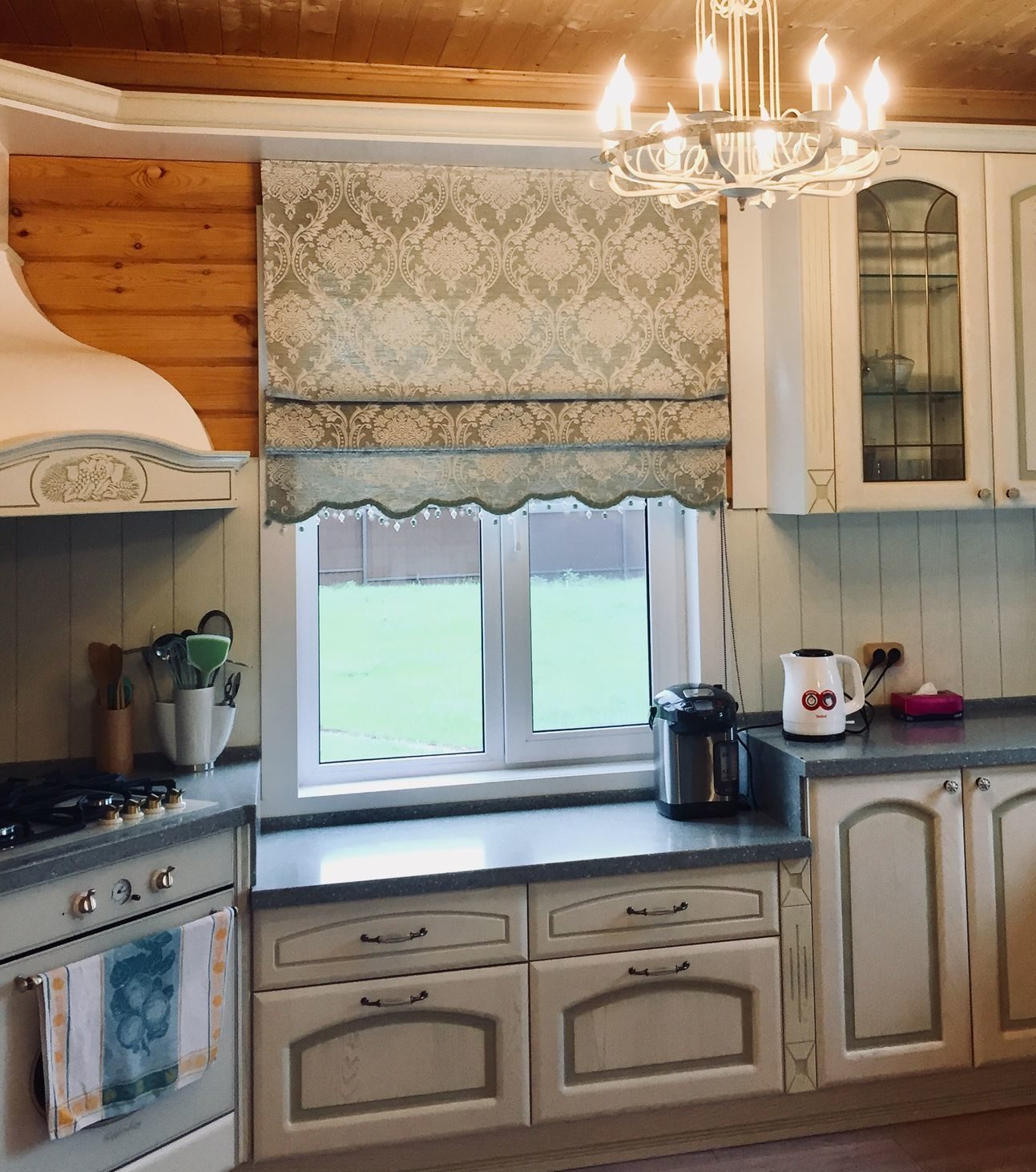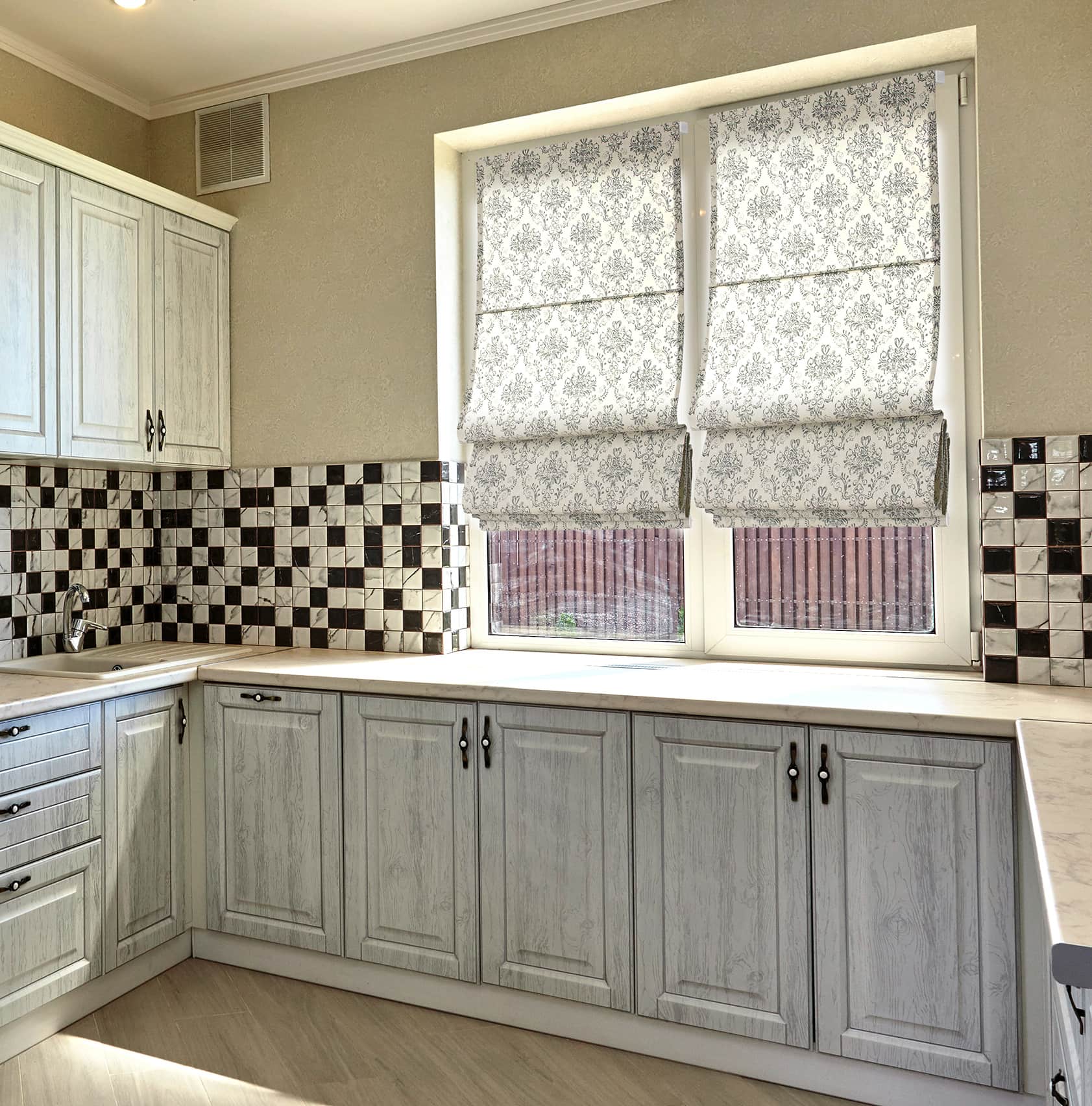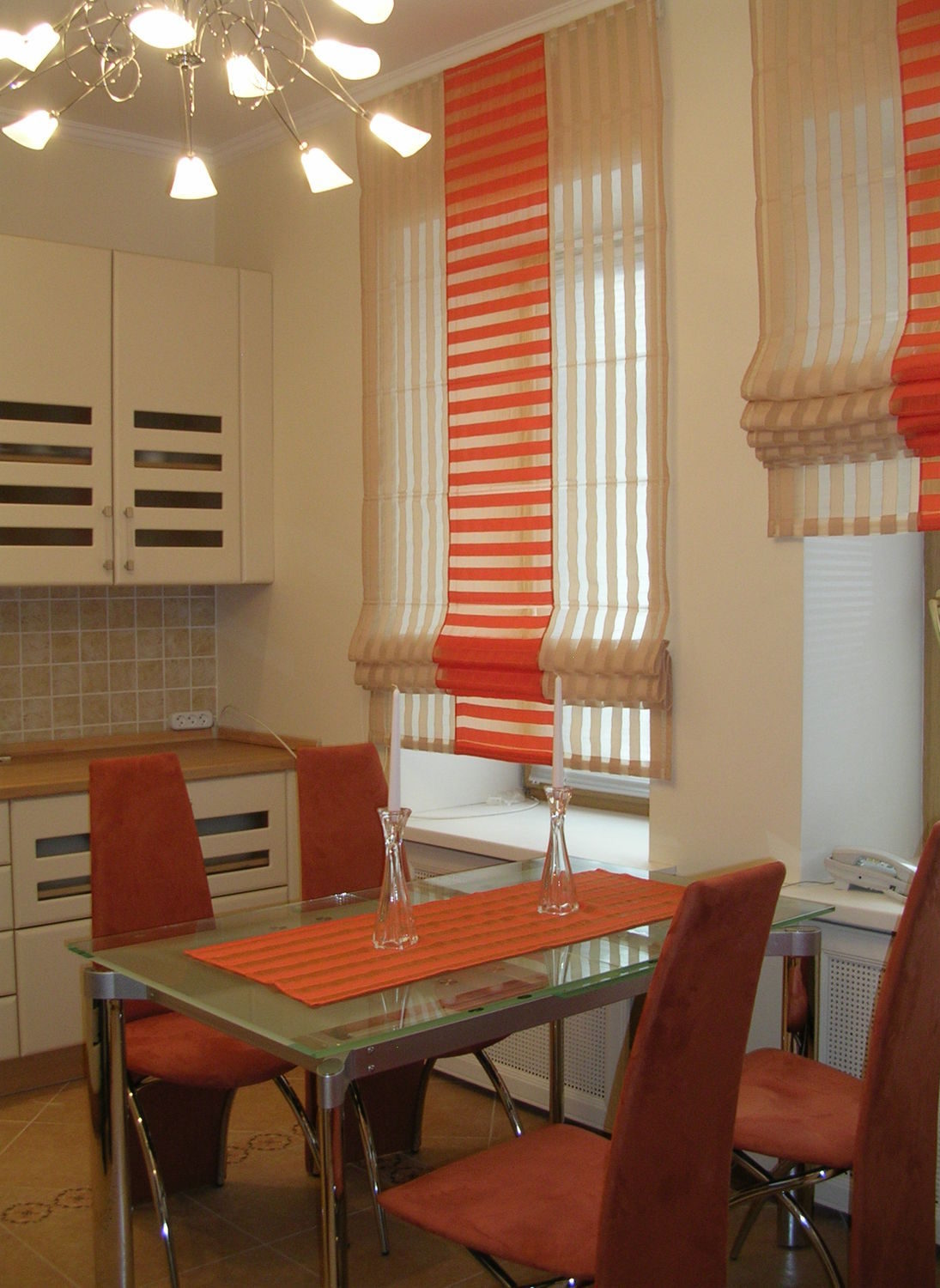 Простые римские шторы в маленькой кухне