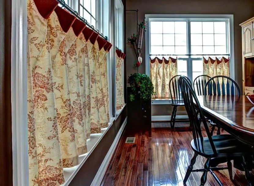 Такие занавески станут для хозяйки настоящим испытанием. Они представляют собой фестонные ряды, ниспадающие до пола или середины окна. Фасон занавесок сильно зависит от размера кухни, вида окон и выбранной ткани.