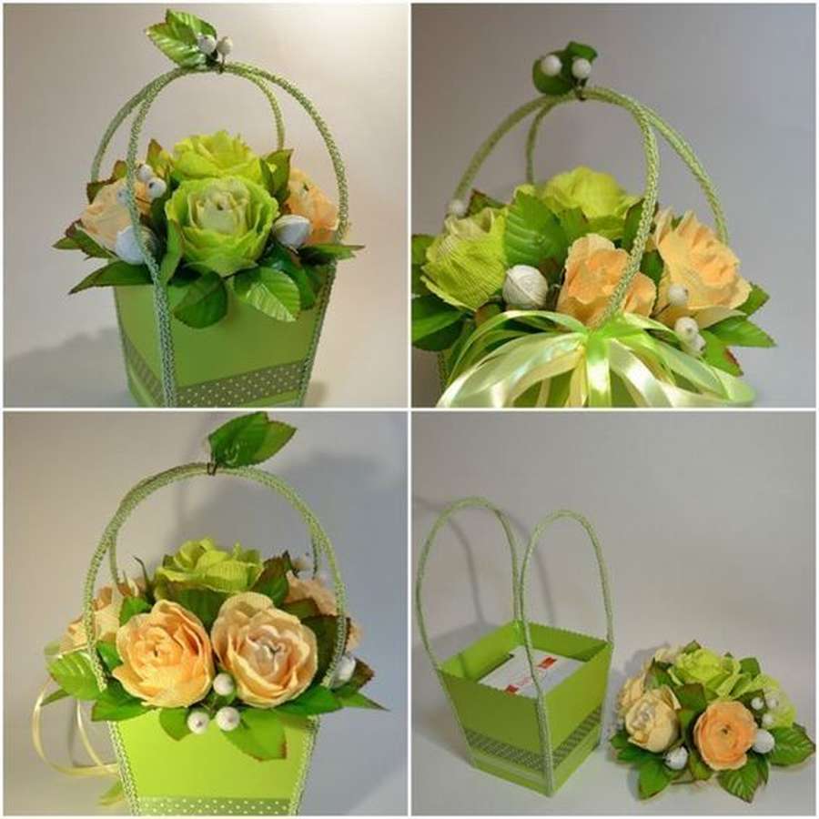 Вот простой пример для вдохновения, как сделать бумажную корзинку с цветами из бумаги. Интересная идея для творчества с использованием картонных коробок.