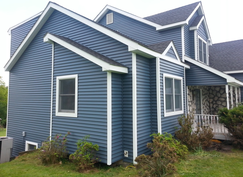 Дом обшит виниловым сайдингом синего цвета