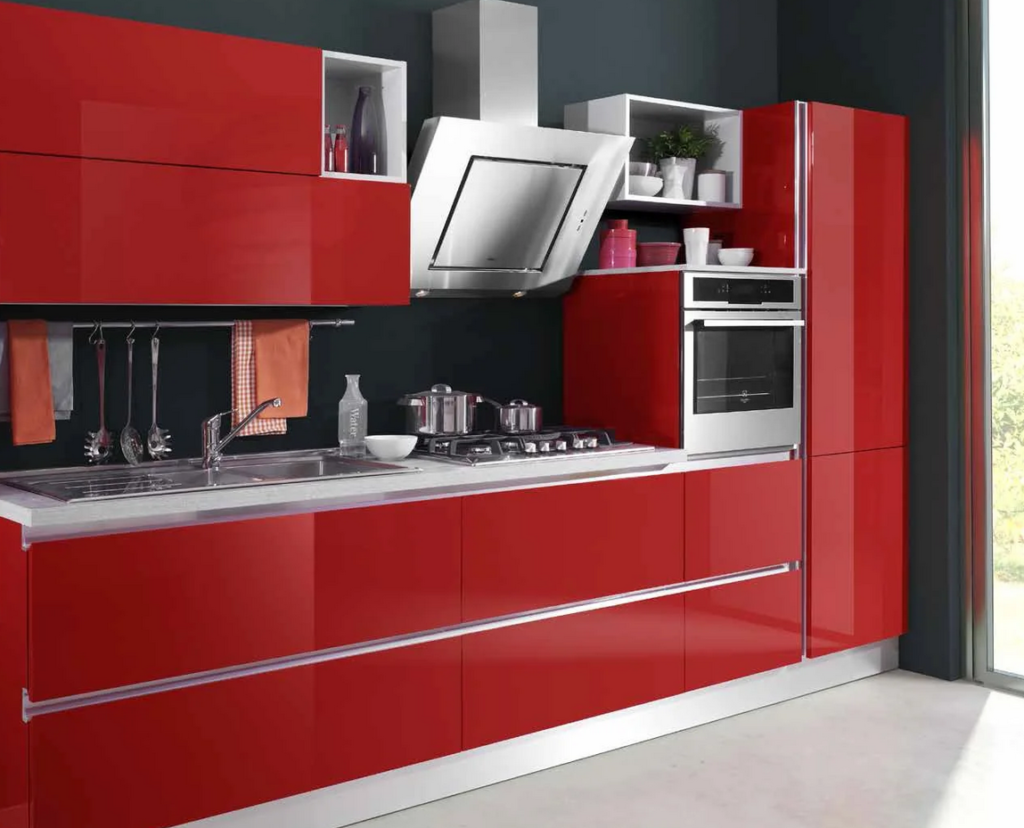 Поверхности должны отдавать глянцевым и стеклянным блеском, подчеркивая строгость стиля. Также в качестве декора используется современная мелкая бытовая техника.