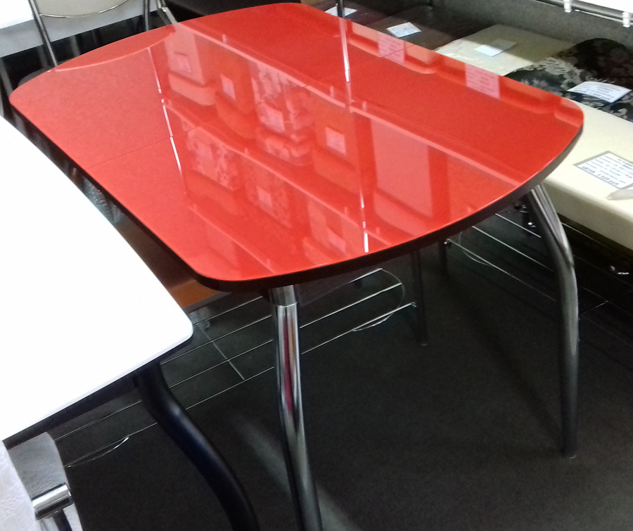 Не следует забывать, что стол с красными элементами должен сочетаться с другими деталями интерьера – стульями или холодильником, шторами или гарнитуром.