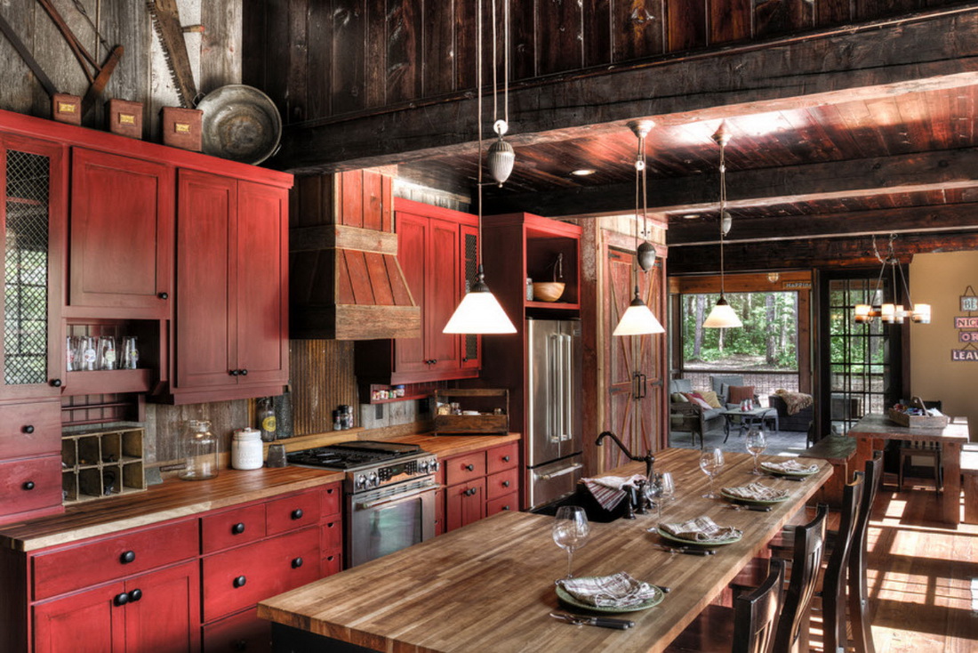 Красный стол в интерьере кухни
