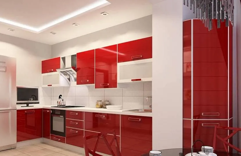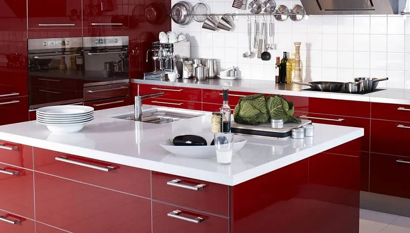 Глянец или мат для кухни в красных тонах