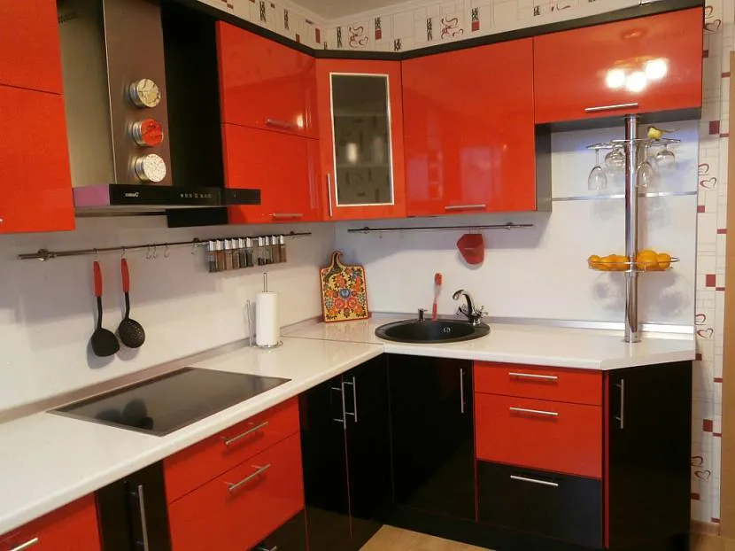 Существует много вариантов цветовых сочетаний красно-черных кухонных гарнитуров.