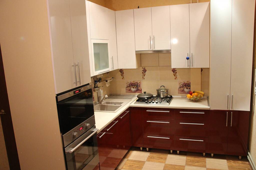 Фото: Небольшая кухня с вишневыми фасадами