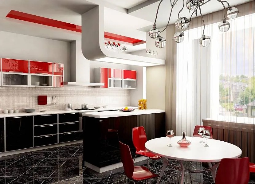 Если вы решили, что ваша кухня должна быть только красно-черной и никак иначе, следует определиться с выбором стиля. К сожалению, это цветовое решение несколько ограничит вас в возможных вариантах.