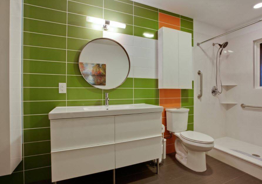 Вне зависимости от цвета, плитка для ванны должна быть как можно менее пористой. Это позволит упростить процесс уборки и не позволит вредоносным элементам забиваться в поверхности и размножаться там. При этом нужно соблюсти баланс: настенная плитка может быть абсолютно гладкой, а напольная должна обеспечивать хорошее сцепление со ступнями ног, ковриком на полу и подошвой тапочек. Это напрямую связано с безопасностью обитателей дом. В остальном выбор плитки полностью предоставляется тому, кто желает взять на себя задачи дизайнера.