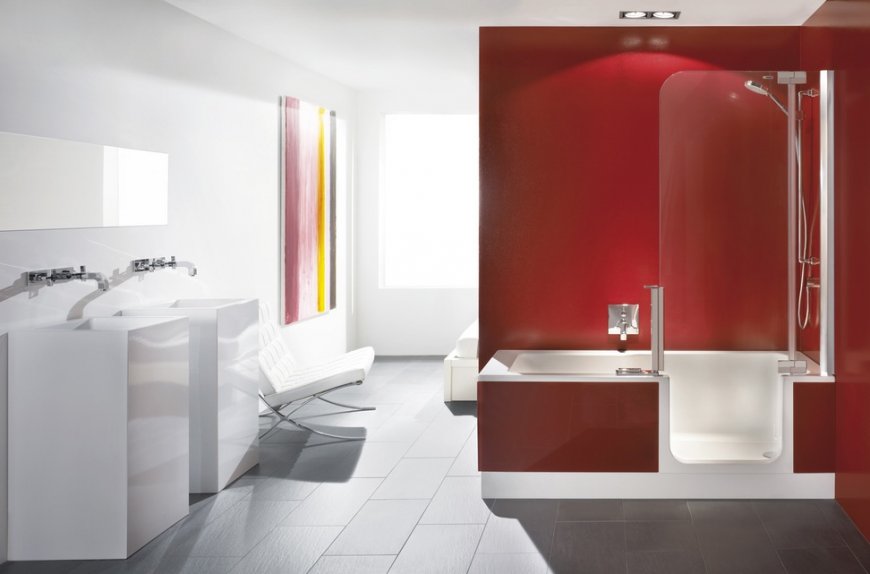 Одним из запоминающихся цветов, несомненно, можно считать красный. Поэтому все чаще отдают предпочтение в дизайнерских решениях для ванных комнат.