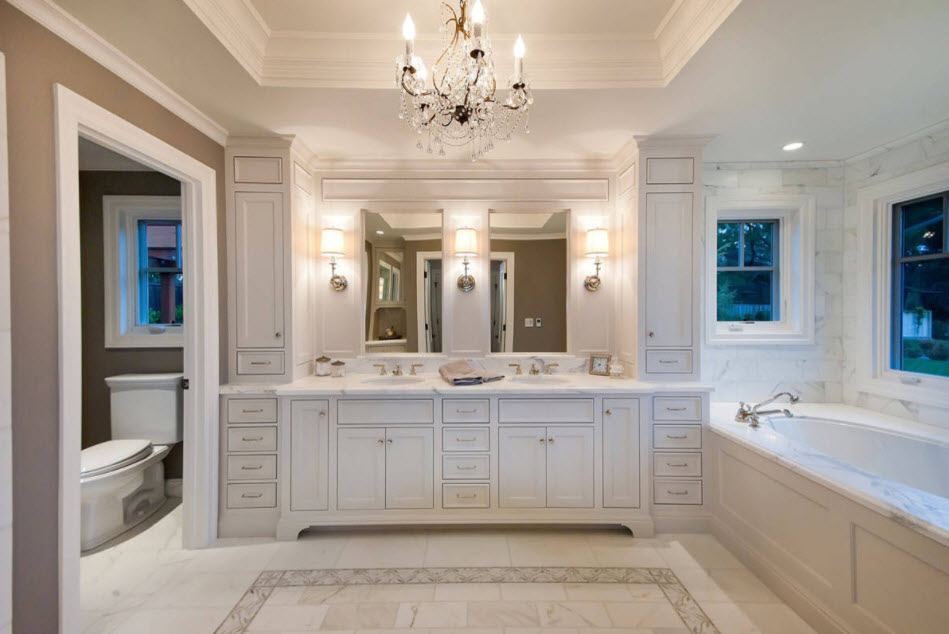 Большая ванная комната помогает размесить мебель и сантехнику по своему усмотрению