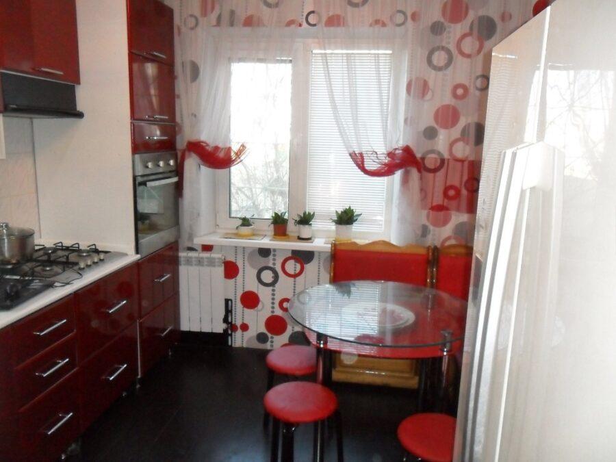 Необходимо помнить о том, что красные обои должны сочетаться с конструктивными элементами: оконными рамами, подоконниками и дверьми. Идеальный вариант — предметы мебели, кухонная утварь, домашний текстиль тоже подобраны в тон обоев.