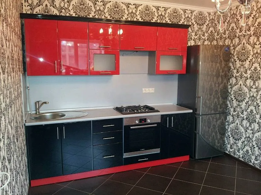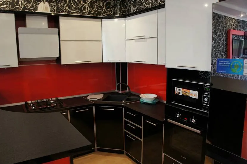 - Чёрный. Красно-чёрное сочетание в интерьере смотрится дерзко и вызывающе. На такой эксперимент решится не каждый, так как обилие этих расцветок может визуально уменьшить размеры кухни и создать в ней гнетущую атмосферу.