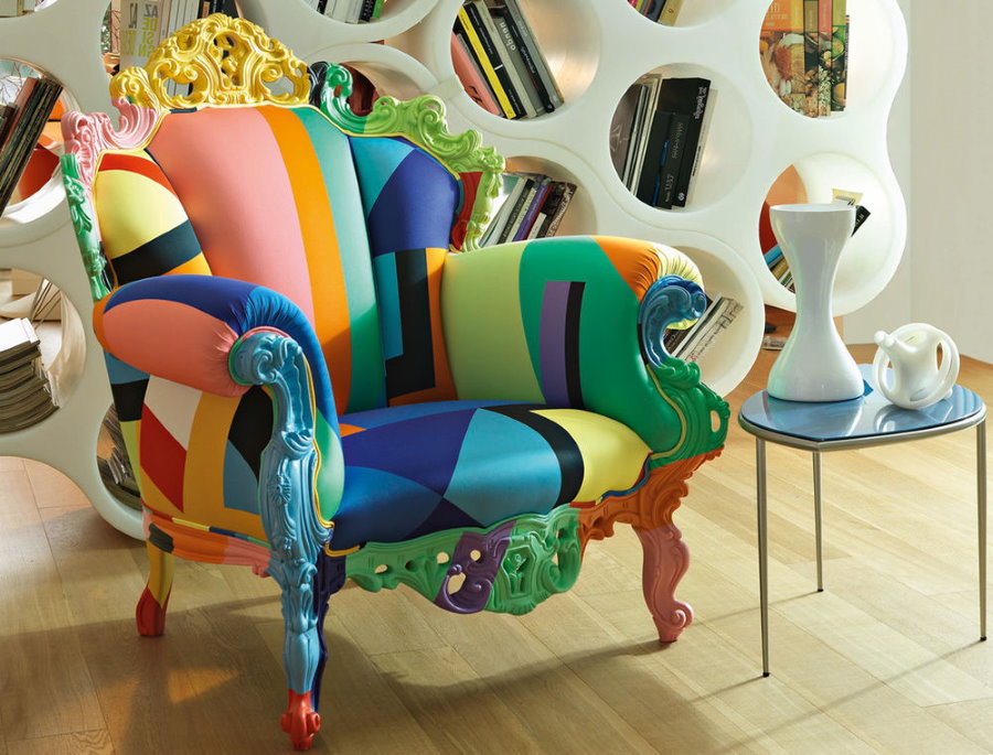 Яркую обивку с дизайнерским принтом выбирают, когда хотят выделить креслу роль акцентного элемента интерьера