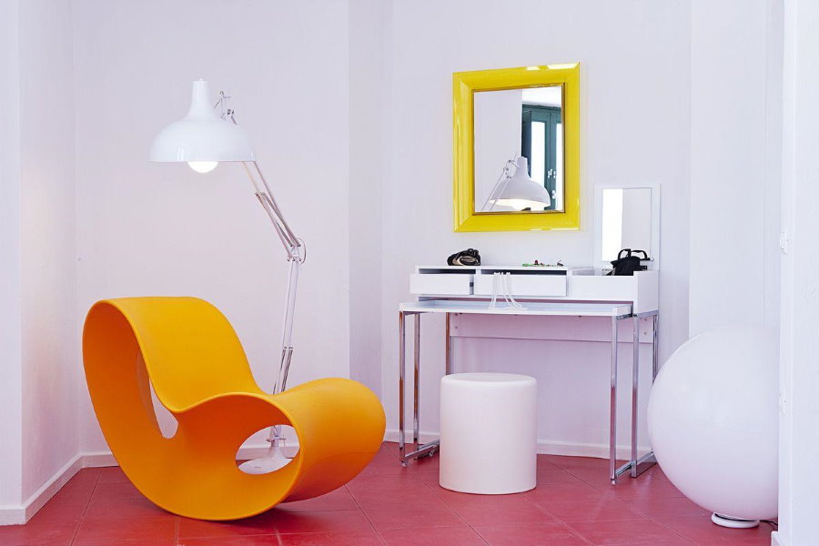 Не нужно насыщать интерьер вычурностью и массивностью. Например, удачным решением будет плетеное кресло-качалка или изящная деревянная модель.