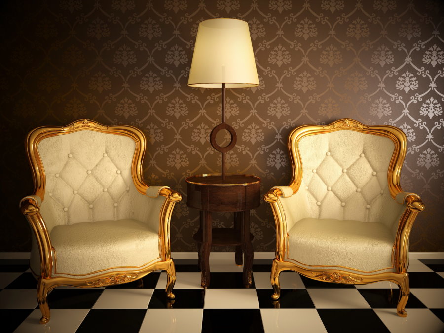 Стиль барокко может потребовать изделия, декорированного мозаикой или резьбой, с обивкой бархатом или атласом. Витые линии интерьера могут быть естественным образом дополнены плетеными креслами.