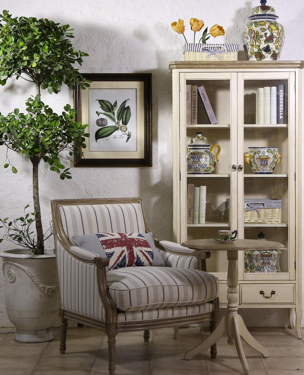 В интерьере кресло прованс сочетают с изящным столиком, небольшим комодом, книжным стеллажом. Стоит также дополнить композицию настольной лампой или торшером.