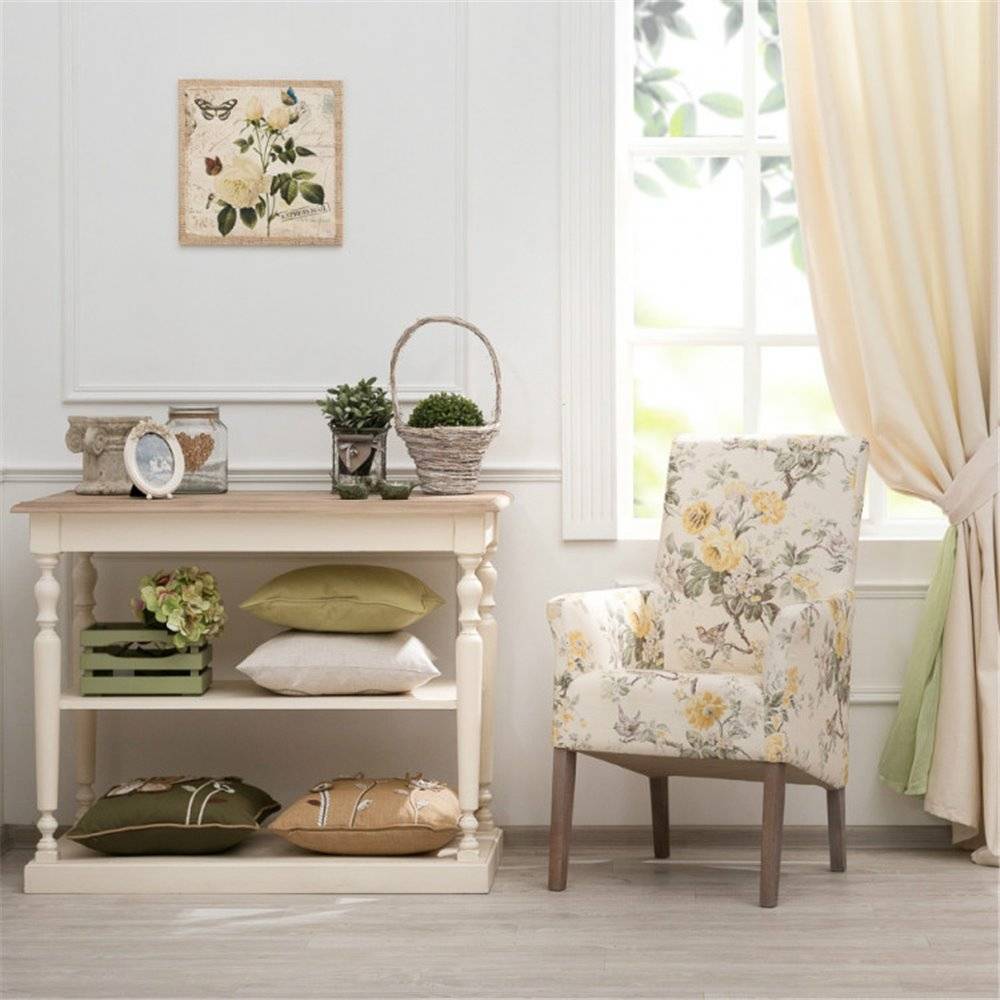 Натуральный текстиль, лишенный помпезности, – отличный вариант обивки. Плотный хлопок, лен подбирают однотонный или цветастый. Использование тканей-компаньонов для обивки мебели и декорирования интерьера (шторы, занавески, скатерти, салфетки) придаст комнате завершенный образ.