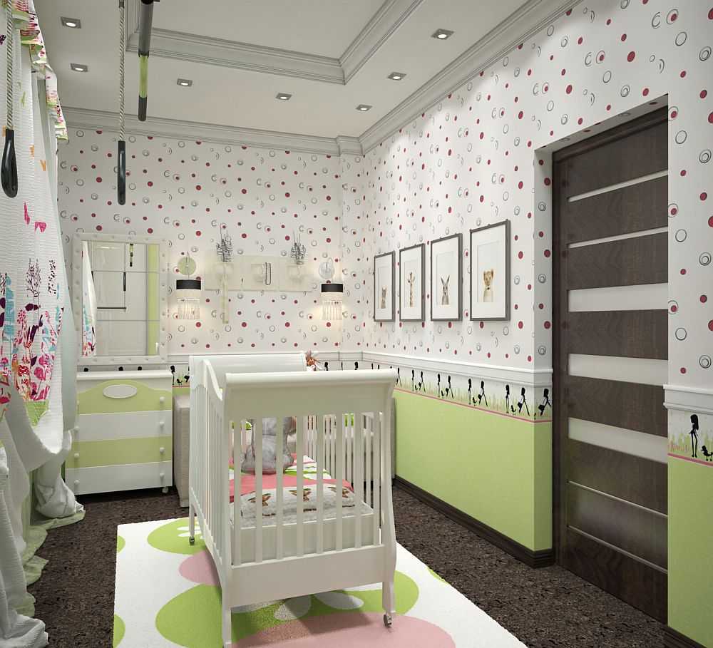 Часто стены в комнатах для маленьких детей делают однотонными, и это не случайно. Психологи считают, что крупный четкий рисунок может пугать ребенка, потому стены или однотонные или с мелким неярко выраженным рисунком. Оставьте сюжеты из мультфильмов на то время, когда малыш чуть подрастет. А пока он лучше себя чувствует в такой обстановке.