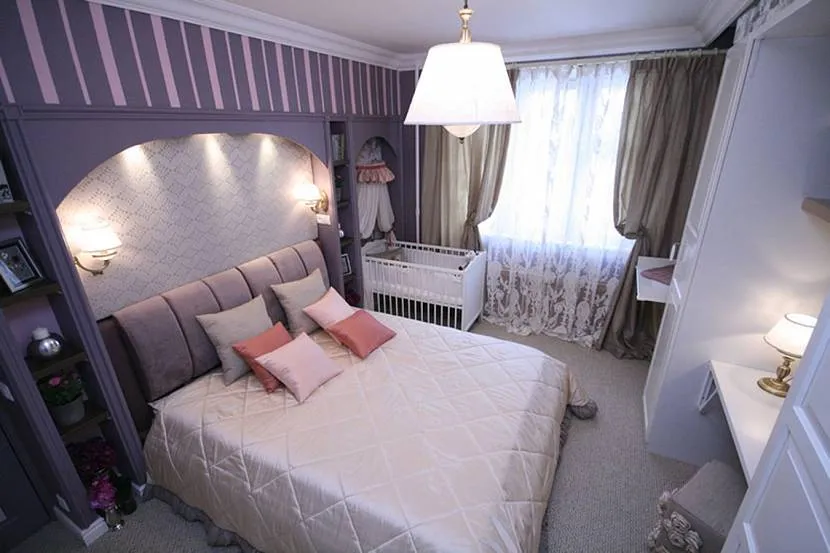 - Кровать должна стоять в светлой части комнаты, но не напротив окна, не рядом с радиатором и не слишком далеко от входа.