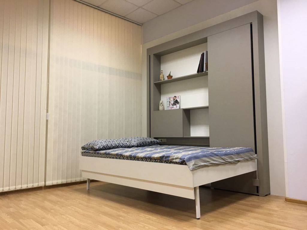 кровать под потолком с подъмным механизмом экономит полезную площадь в дневное время