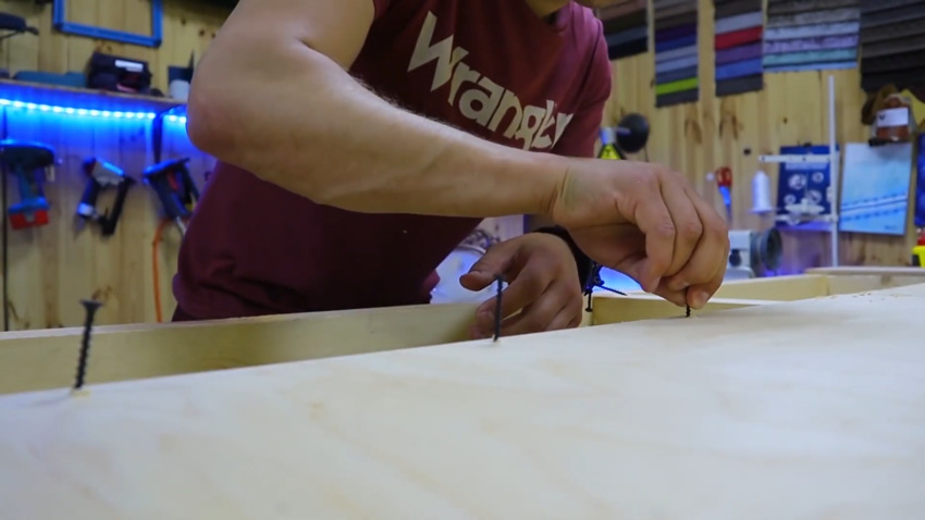 - Использование клея, степлера и саморезов для крепления досок. Такая ступенчатая схема фиксации деталей является более надежной.