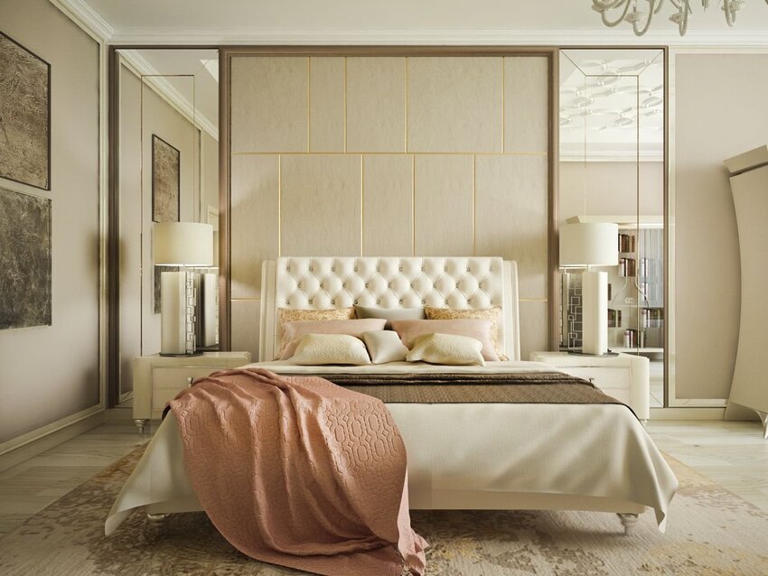 Любителям лаконичного не стоит делать слишком сложное, громоздкое изголовье для кровати. Намного более актуальной будет однотонная мягкая конструкция.