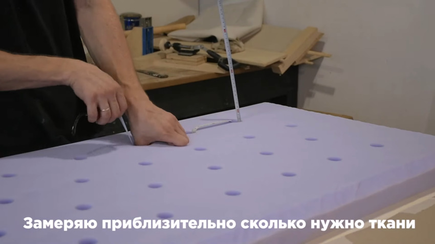 | 9 | ![]() | С помощью метровой ленты замерьте примерную необходимую длину обивочного материала, вставляя ее в углубления. |