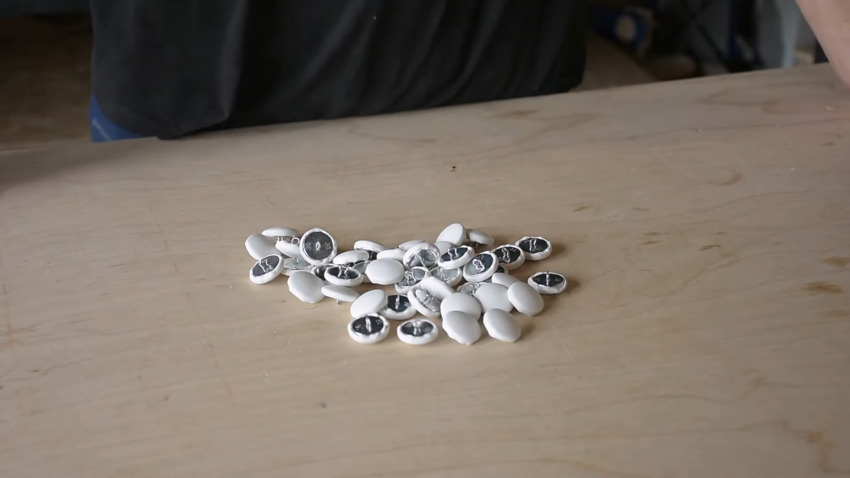 | 1 | ![]() | Подготовьте крупные круглые металлические пуговицы для каретной стяжки, на которых закрепите обивочный материал с помощью специального оборудования, выполняющего роль пресса. |