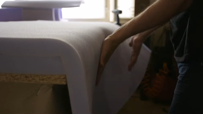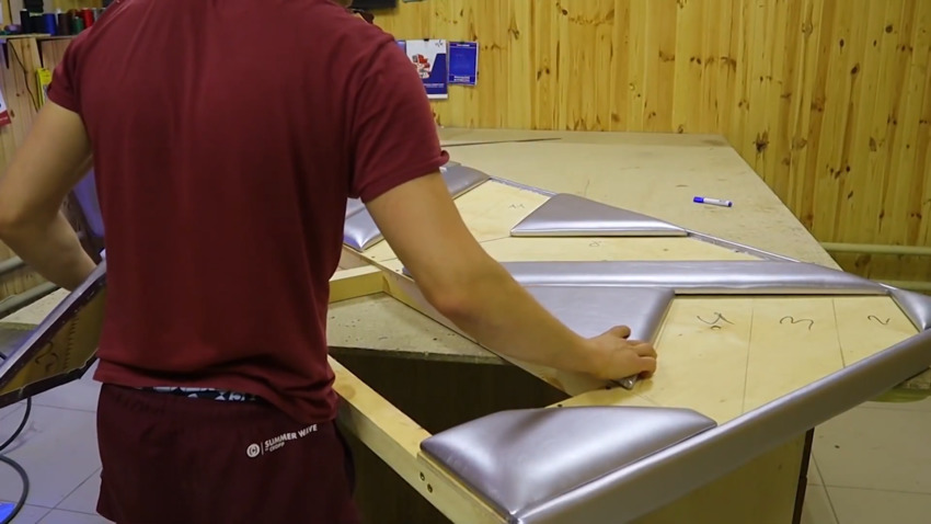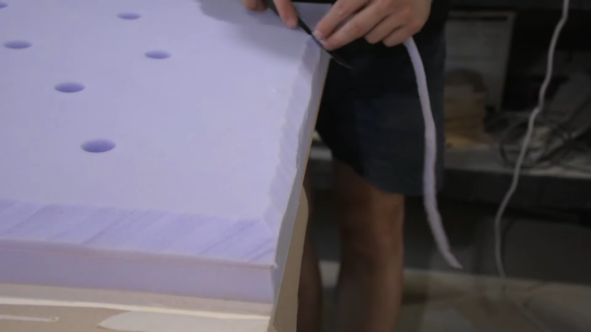 | 8 | ![]() | Затем срежьте верхний слой поролона по бокам изголовья под небольшим углом. |