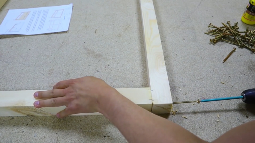 по дереву (черные) и клей ПВА. Все саморезы нужно крепить со стороны длинного