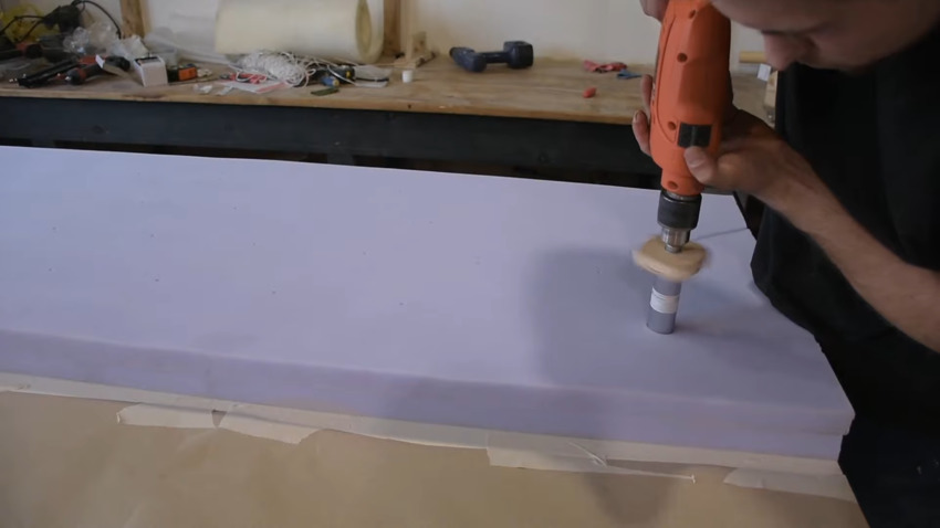 | 7 | ![]() | Далее проделайте отверстия в поролоне через имеющиеся углубления, которые следует сделать более крупными. Для этого отлично подойдет хромированная ножка для мебели диаметром 3 см. |