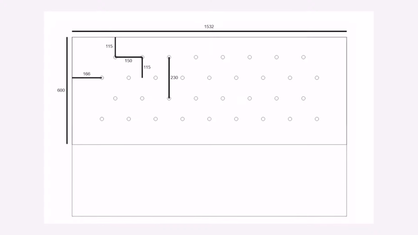 | 3 | ![]() | Затем сделайте разметки, как указано на фото, где белые круги – это будущие отверстия. |