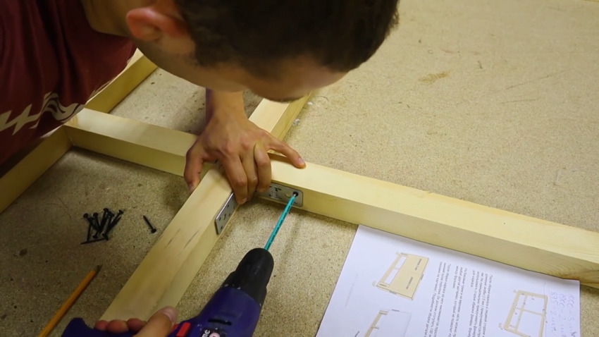 | 8 | ![]() | К другой стороне конструкции приложите другую рейку, сделайте на ней отметки карандашом напротив каждой из досок и вкрутите саморезы в этих местах, предварительно просверлив углубления. То же самое проделайте с двумя оставшимися сторонами и зафиксируйте углы со всех сторон шурупами. |