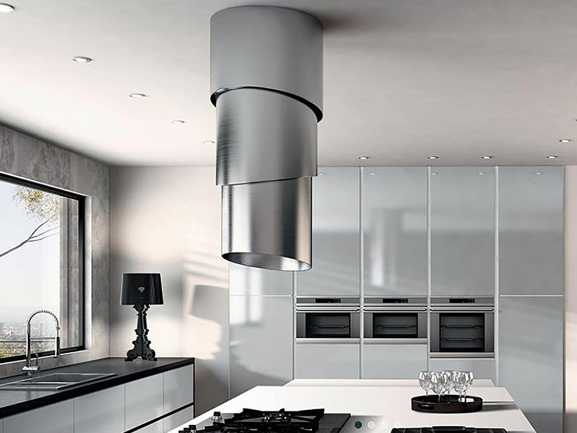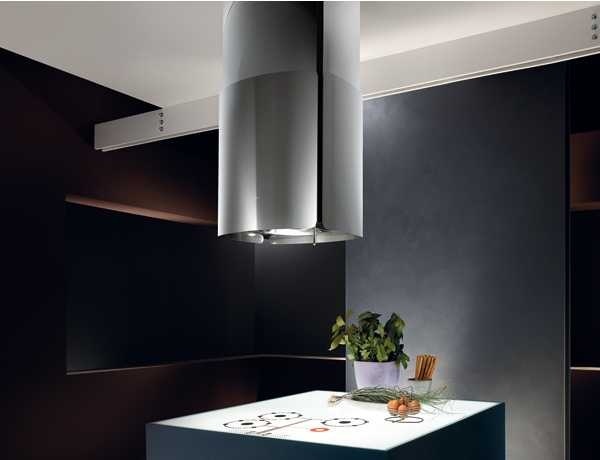 Совет: для декорирования островной зоны вы можете выбрать нестандартные модели вытяжек в форме конусовидного цилиндра или шара.