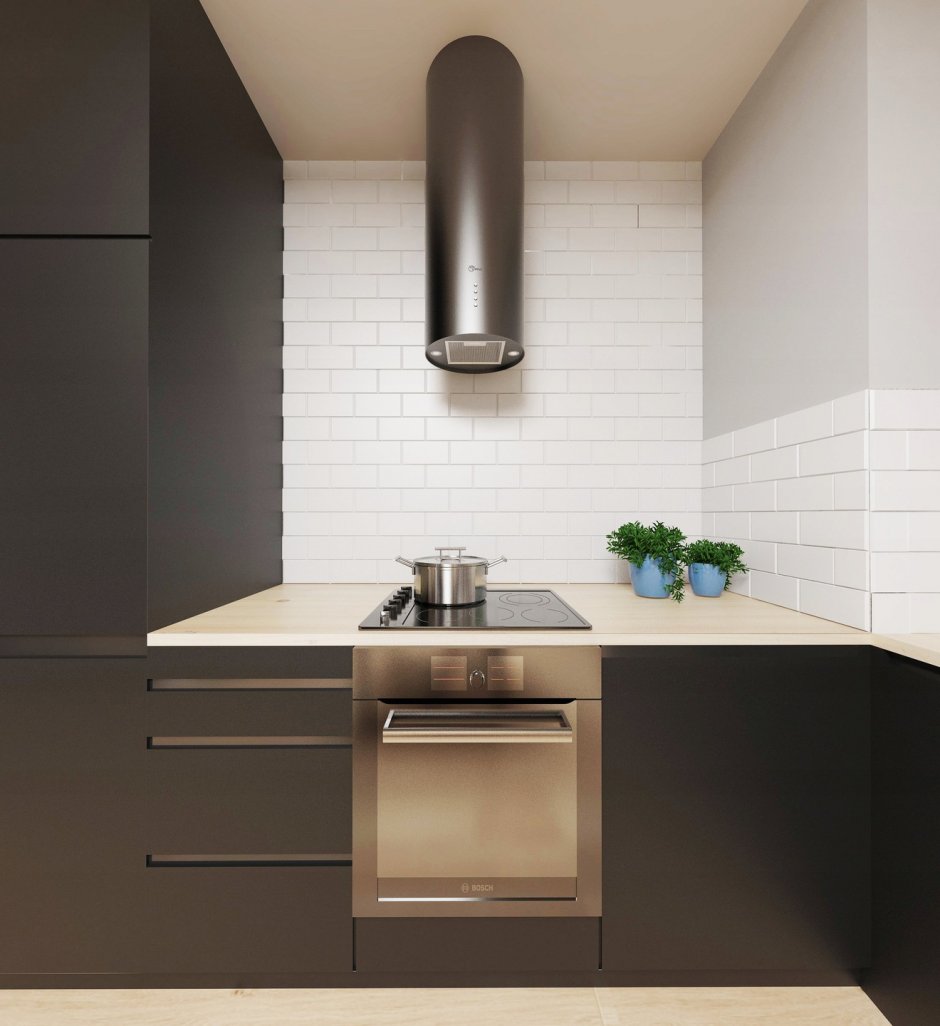 - Не подходят для маленьких помещений, менее 20 кв. м. В этом случае вытяжка будет визуально уменьшать комнату. Высокая мощность не будет востребована.