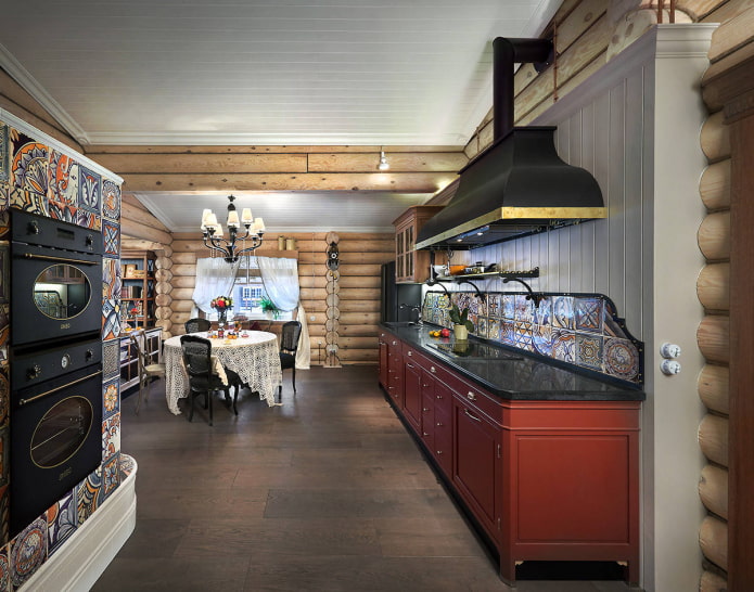 На фото вариант нестандартного кухонного дизайна в доме
