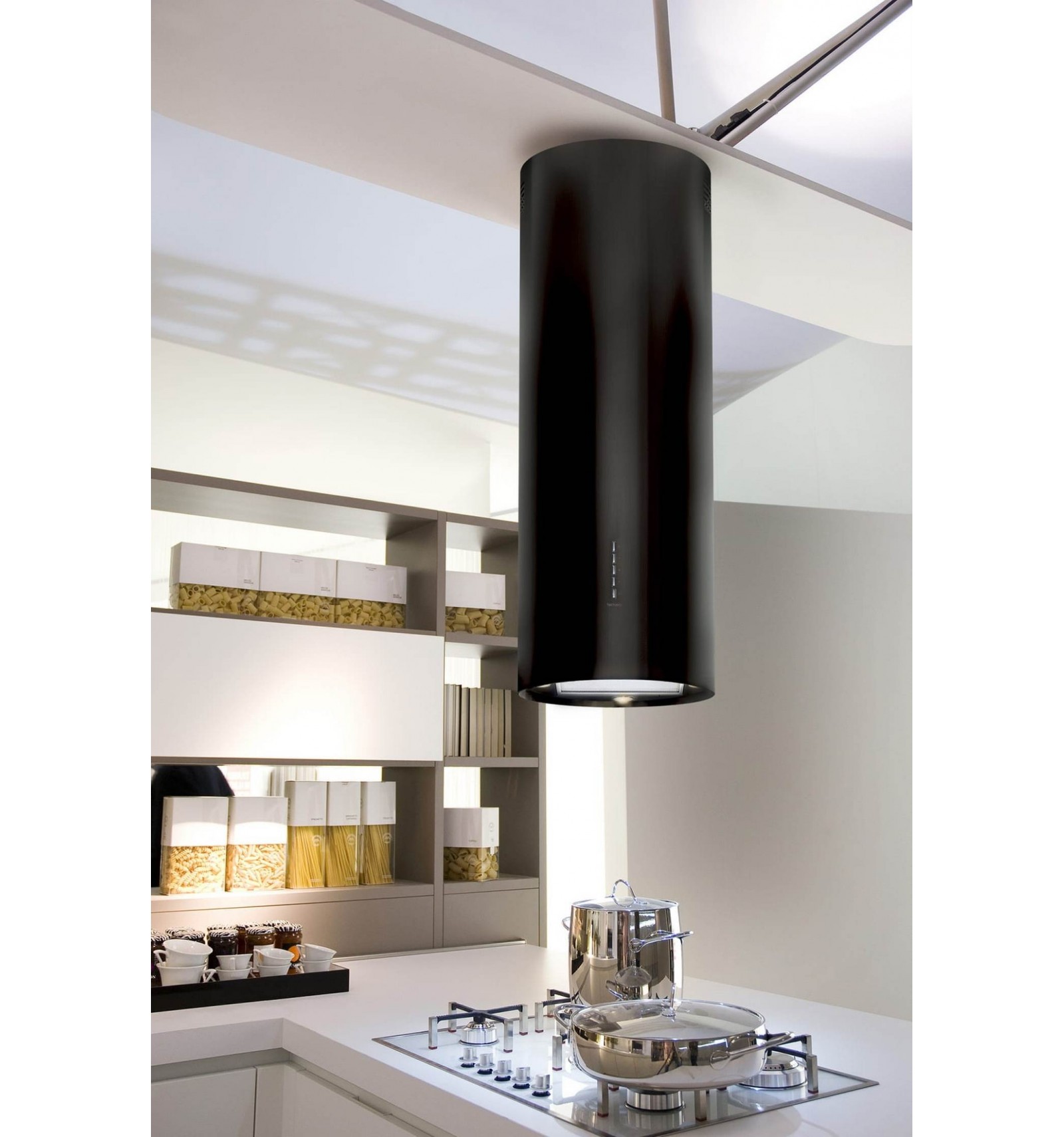 - Отвод неприятных запахов и паров. Основное назначение вытяжки – это удаление запахов, дыма и паров во время готовки. Островная круглая вытяжка обеспечивает эффективную вентиляцию воздуха, сохраняя свежесть и чистоту на кухне.