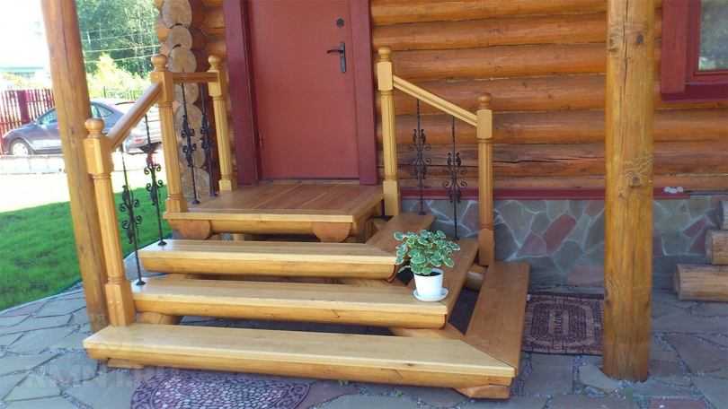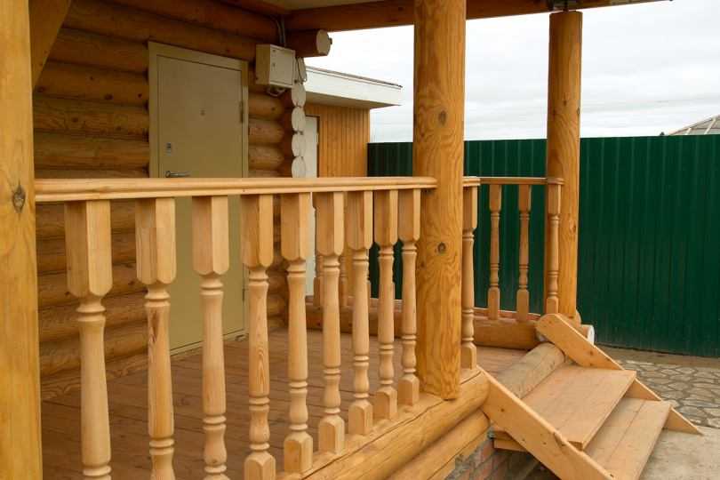 Крылечные сооружения могут быть выполнены из дерева, бруса или бревна. Их чаще всего покрывают навесом или полностью закрывают так, как атмосферные осадки оказывают негативное влияние на массив. В случае если планируется открытая пристройка, для продления эксплуатационного срока, конструкцию нужно обработать специальными пропитками.