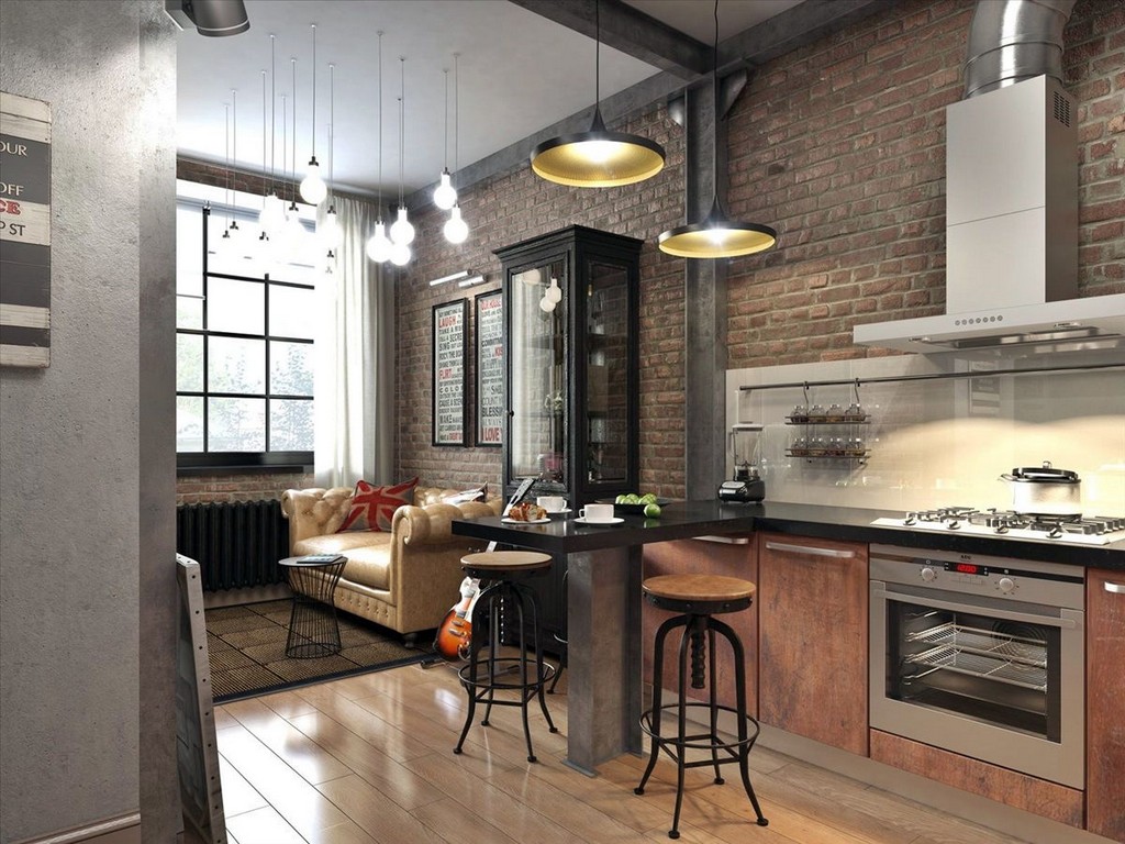 можно снять покрытие стен или использовать копию кирпича. В случае с кухней