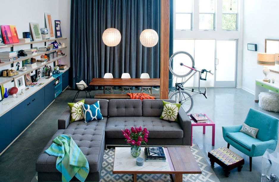 Объединение этих функциональных зон позволяет существенно расширить пространство каждого помещения. Даже со стационарными перегородками – полупрозрачными, ажурными, раздвижными, стеллажами – общий объем будет выглядеть гораздо более просторным, чем каждая отдельная комната.