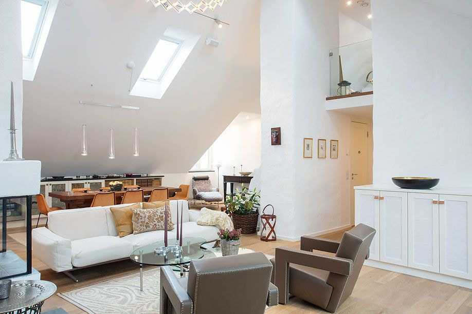 Здесь важно обеспечить качественное освещение. Но в таком интерьере будет сложно найти подходящее место для столовой, так как для этой зоны также необходим оконный проем