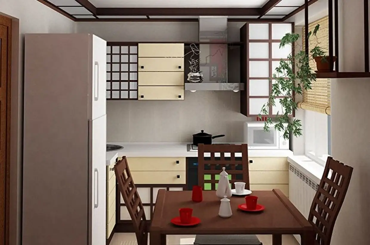 - Если же семья большая, и вам нужны вместительные шкафы, остается только искусственно увеличить площадь кухни, объединив ее с лоджией, коридором или даже смежной жилой комнатой. Такая переделка потребует составления полноценного проекта и согласования в профильных службах.