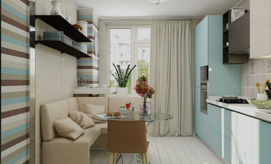 На следующих фото – интересные идеи оформления зоны отдыха в маленькой кухне.