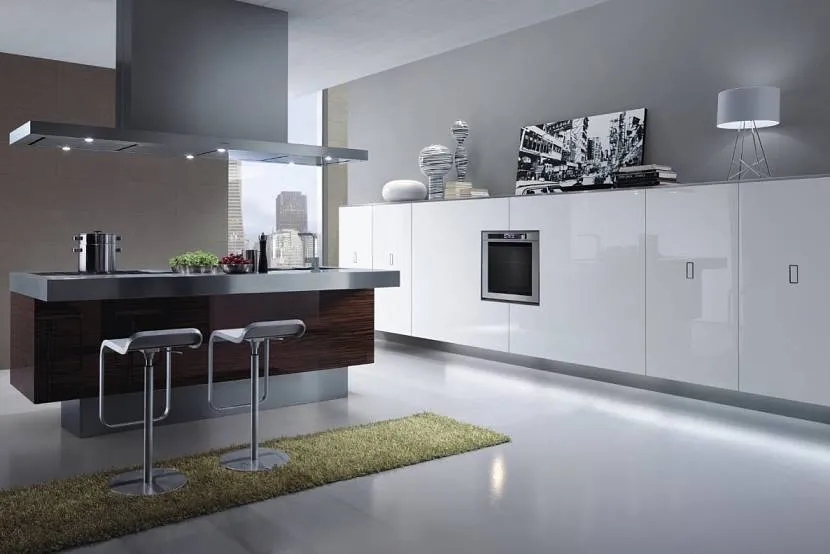 Самый простой способ – купить заводской дизайнерский кухонный гарнитур без верхних шкафов. Производят такую мебель западные изготовители мебели премиум-сегмента. Обойдется дизайнерская мебель значительно дороже, чем комплект, изготовленный на заказ в отечественной фирме.
