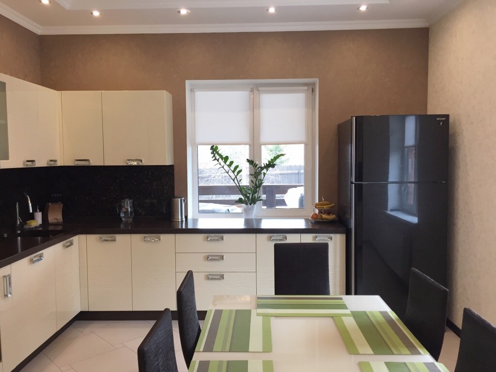 Гармония. Если вы не дизайнер по профессии, не пытайтесь смешивать элементы разных стилей. Чтобы гармонично сочетать «золото» и «глянец» или «баклажан» и «капучино» на ванильной кухне, обычного «я так вижу» будет недостаточно. И даже если вашим вкусам подобная кухня вполне отвечает, другие жильцы и гости подобные комбинации вряд ли оценят. Если не уверены в своих силах, обои берите светлые — их проще вписать в дизайн интерьеров разных стилей. Да и светлый фон глазу привычнее. А вот мебель и декор – напротив, предпочтительно подбирать темные. Взгляните как выглядят на фото фасады цвета бордо