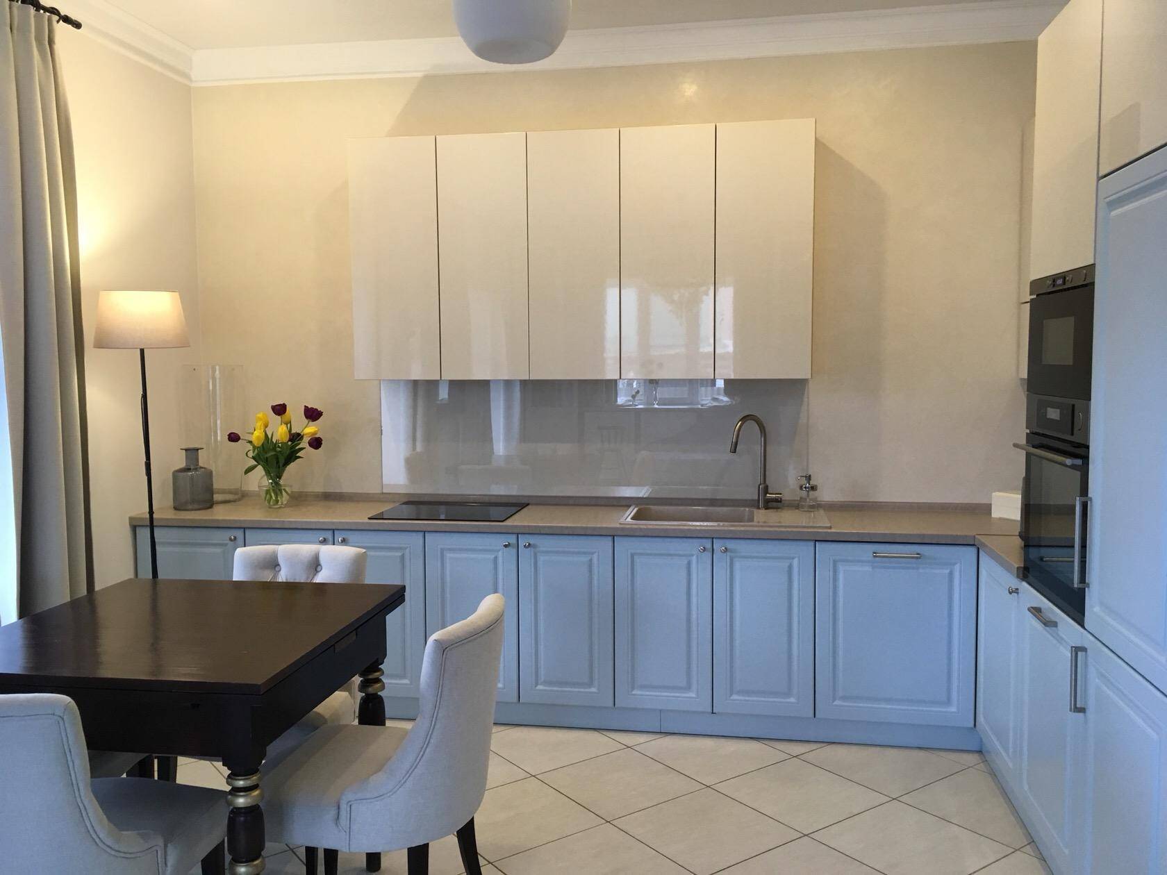 - Кухня, сочетающая цвет синий с ванилью, станет оригинальным решением соседства двух разных цветов, которые превосходно дополняют друг друга.