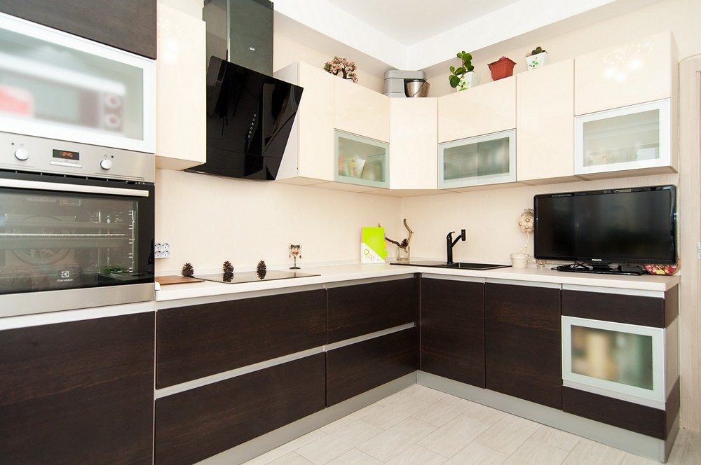 Для тех, кто ценит удобство и функциональность. Главным элементом дизайна такой кухни станет современная бытовая техника. Выбирать следует модели светлых оттенков, прятать их за фасадами мебели нет необходимости.